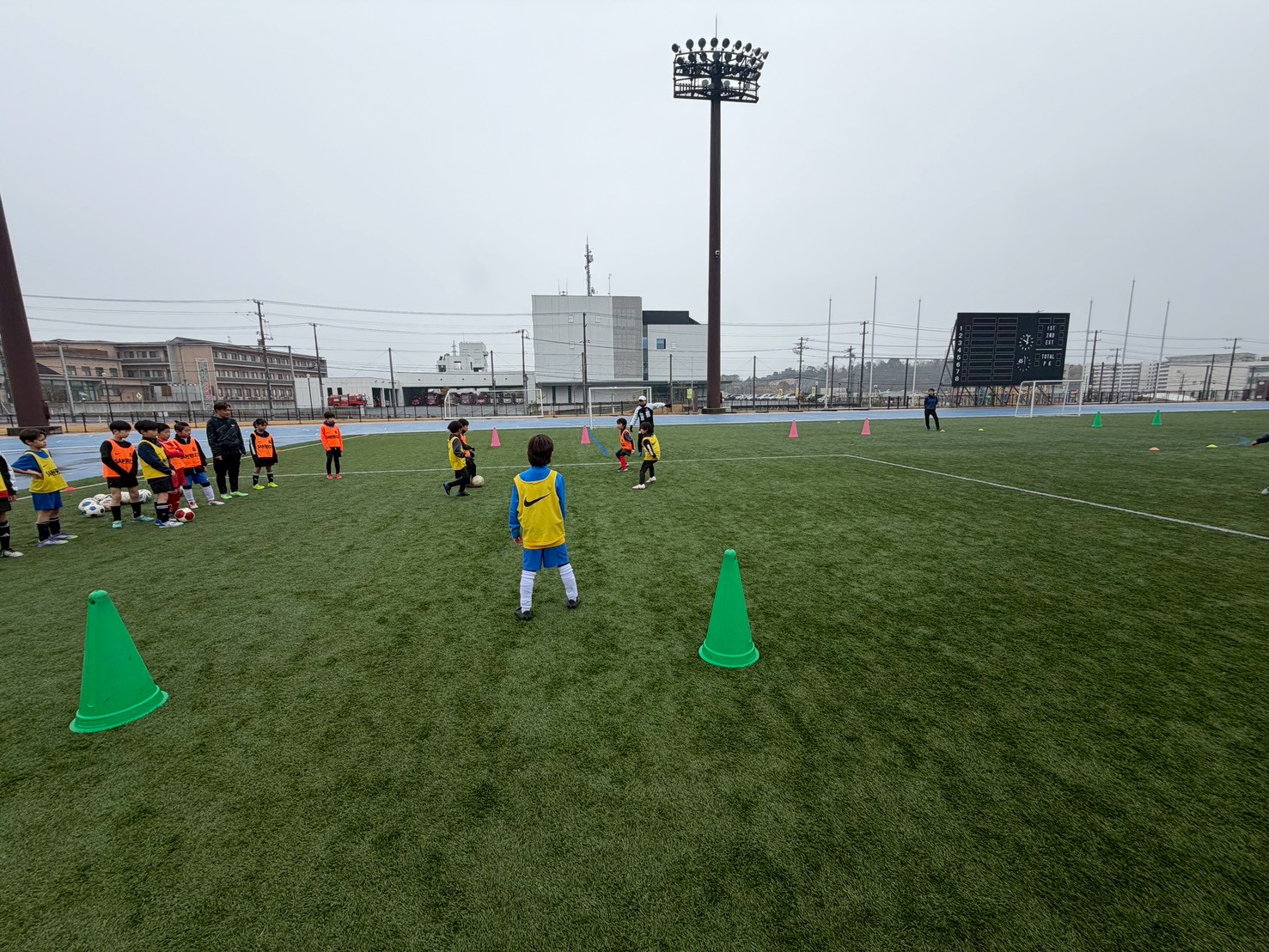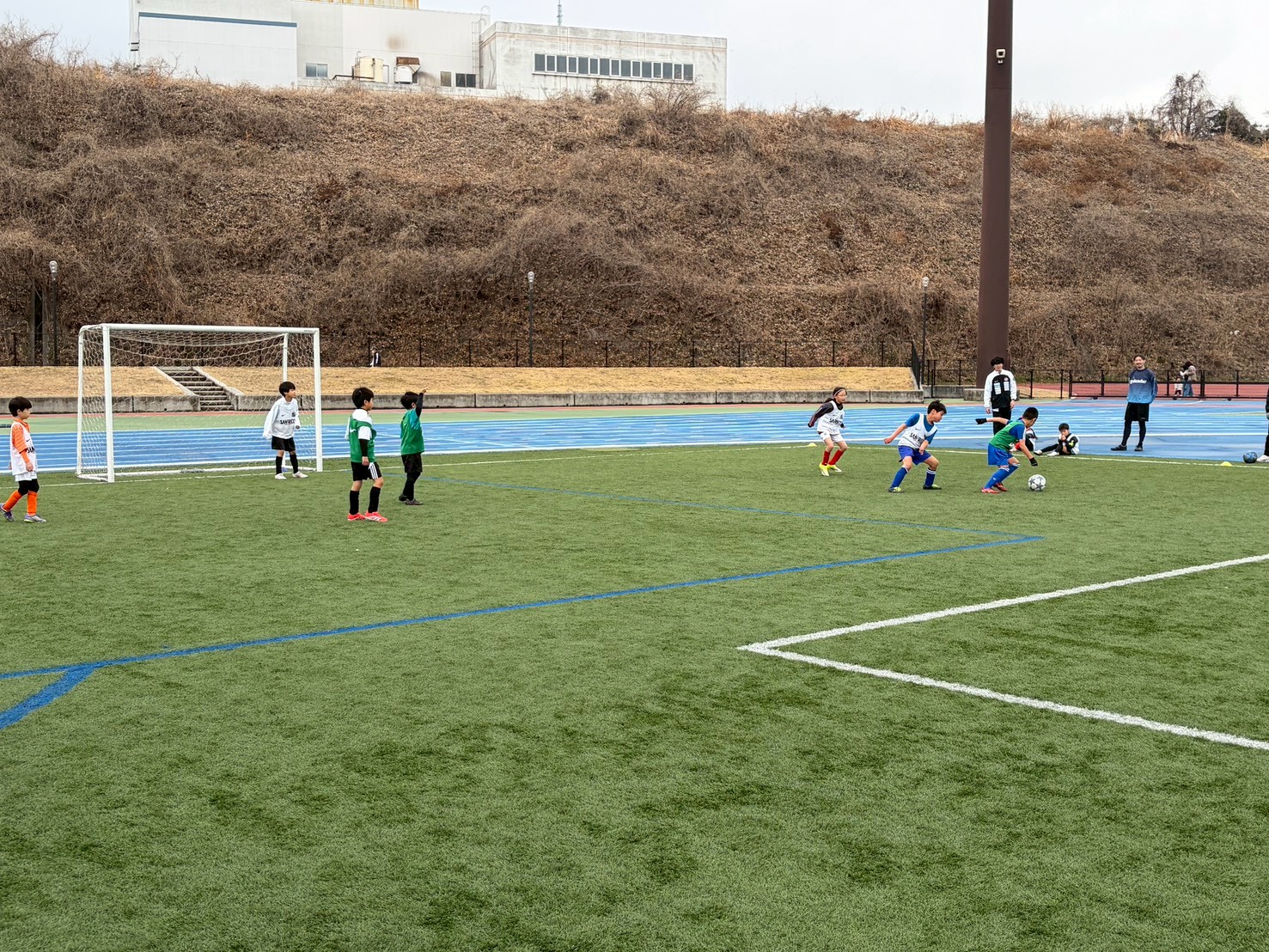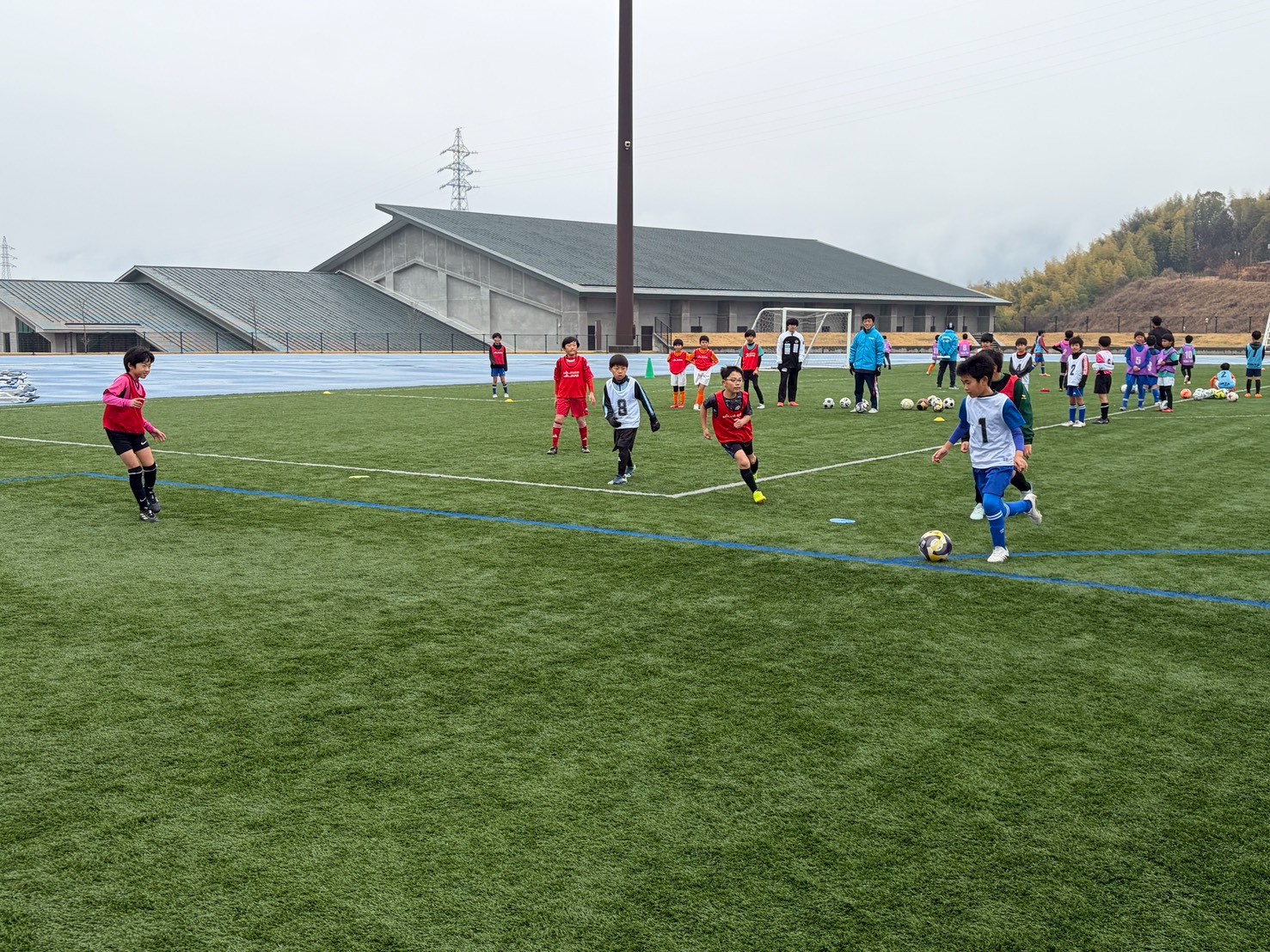 このサッカー教室は岩国市サッカー協会主催で毎年開催されており、今年も昨年に引き続き、サンフレッチェ広島岩国スクールの会場でもある愛宕スポーツコンプレックス内の“55Field”で開催されました。
